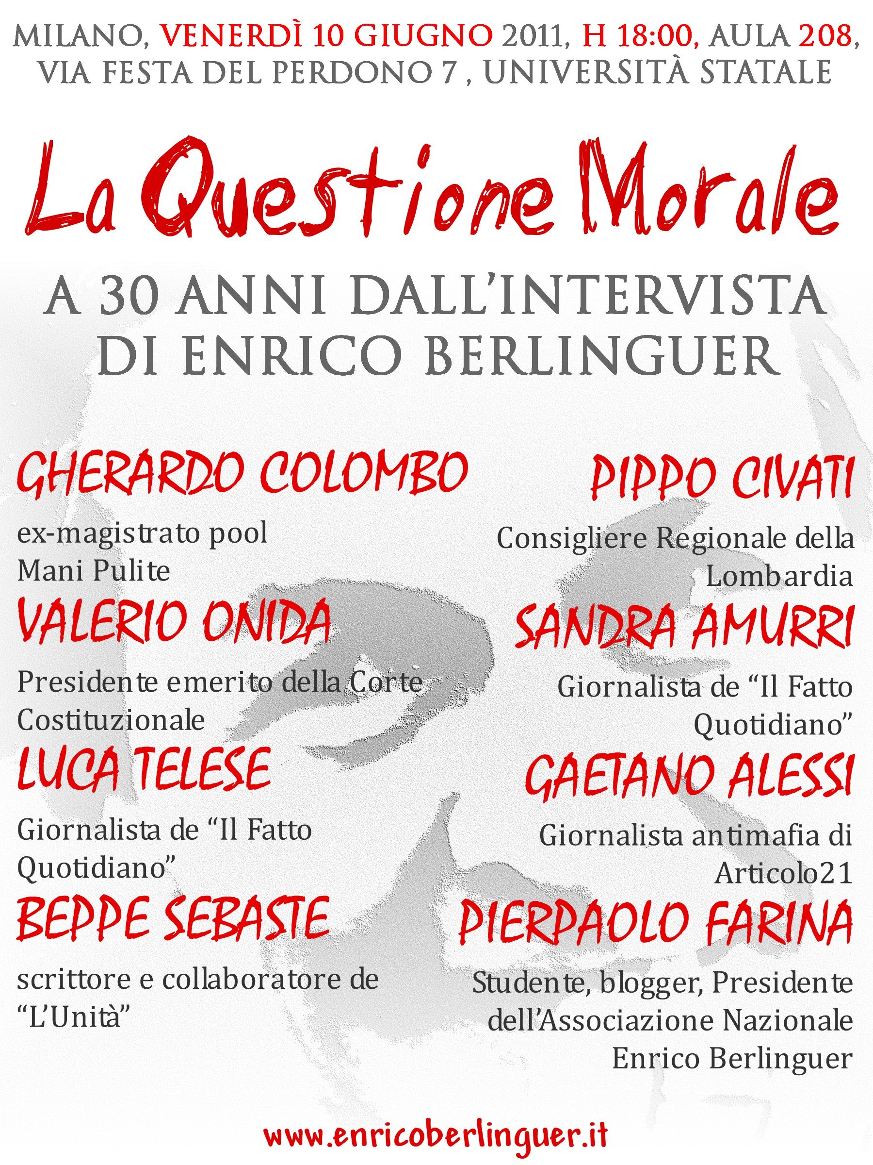 Berlinguer..un Uomo con la consapevolezza che essere un Politico era un Onore…oggi i politici sono il nostro onere e non sono in grado di vedere il bene dell’Italia..ma noi cittadini SI e dovremmo manifestare insieme senza bandiere la nostra Volontà di avere una Politica formata da Partiti che si complementano e non che si distruggano a vicenda e che giocano a Risiko con i nostri voti…